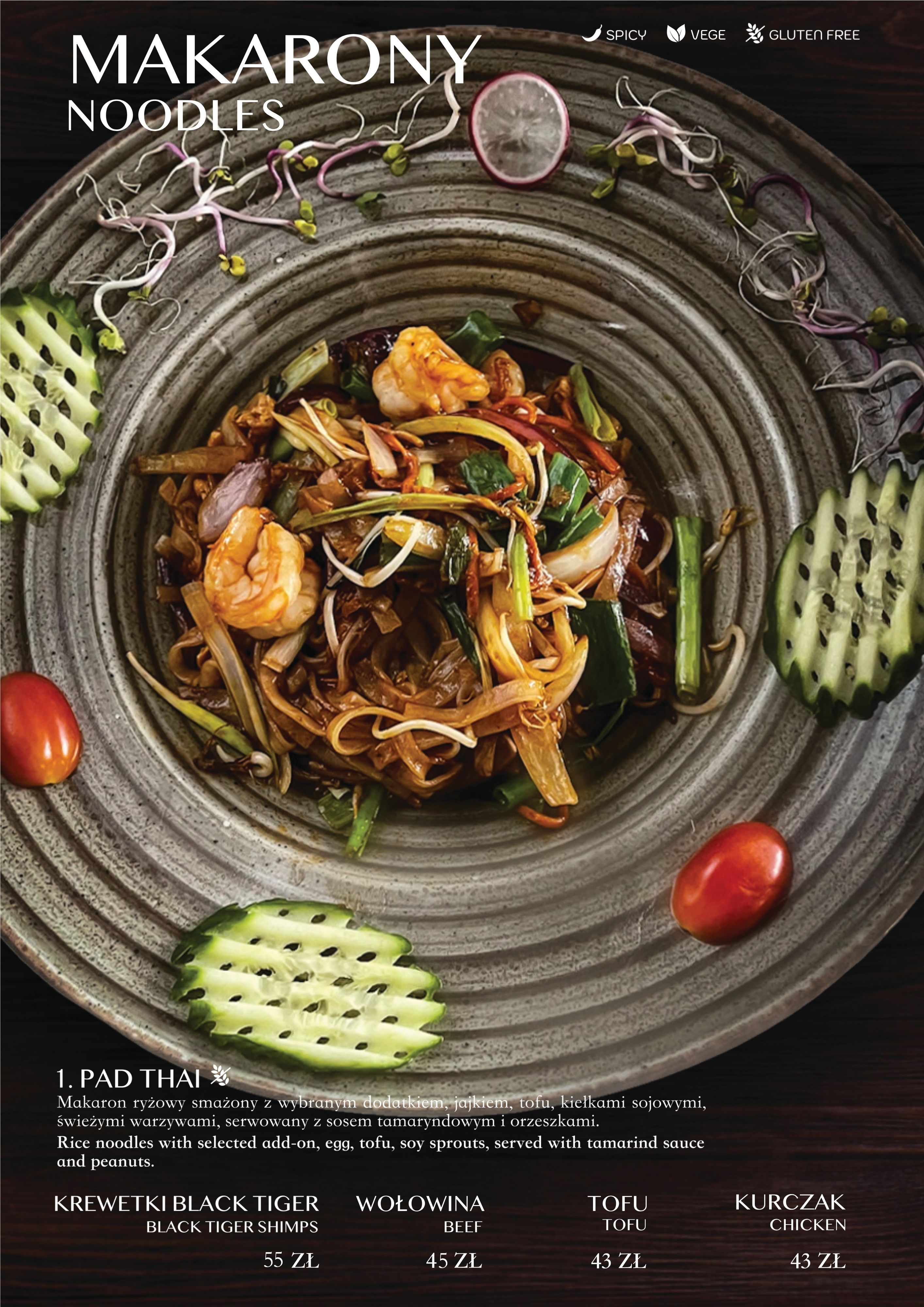 wieprzowina, szalotka, makaron ryżowy, sajgonki i świeże warzywa